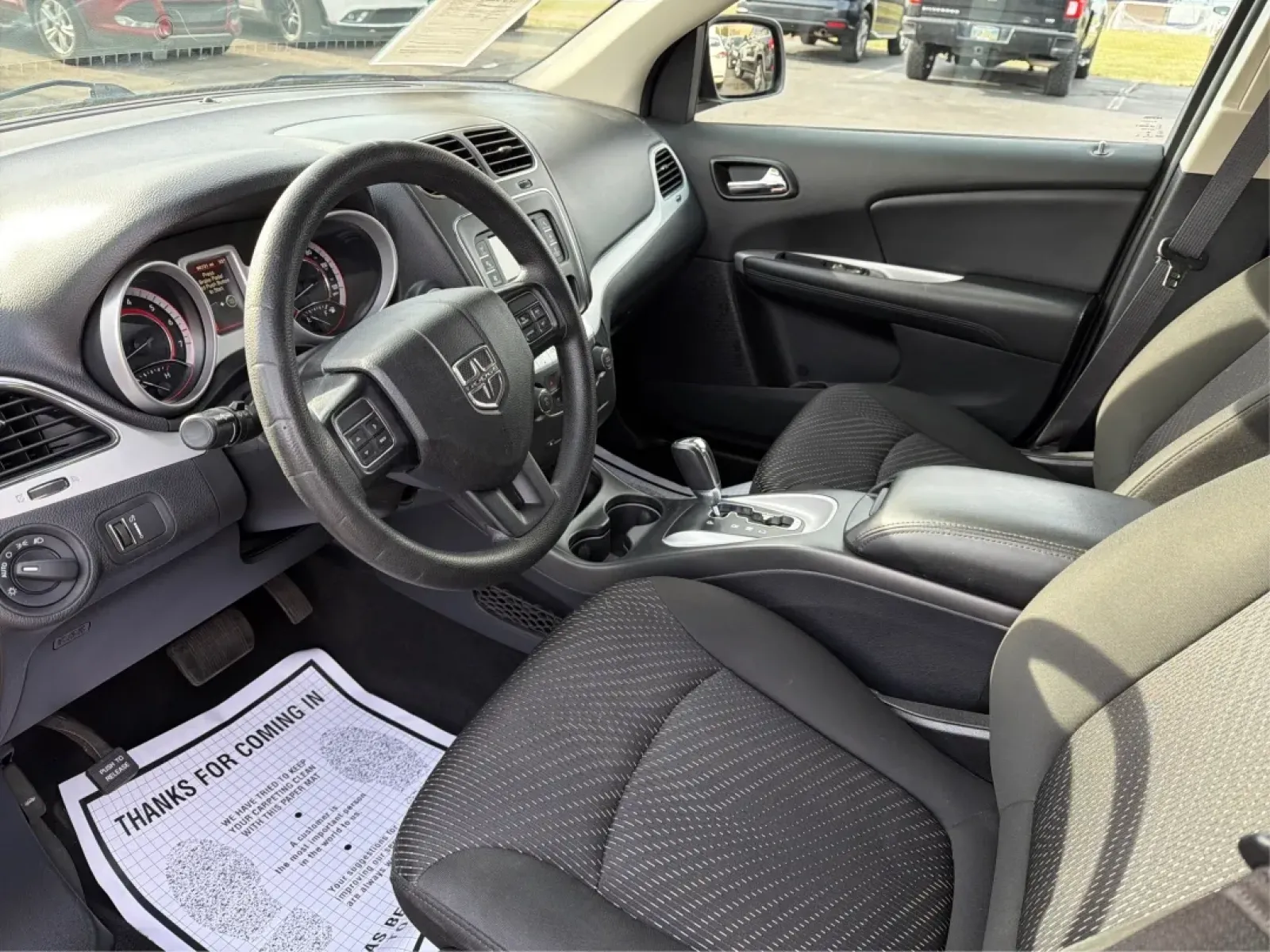 Step inside to find a spacious interior designed for maximum comfort and convenience. The Journey features a versatile seating arrangement with second and third-row removable seats, allowing you to tailor your space to fit your family's needs. With leather seating surfaces and a leather-wrapped steering wheel, every journey feels upscale. Enjoy the convenience of features like keyless entry, power windows, and a rear window defogger, ensuring that you and your passengers remain comfortable regardless of the weather.